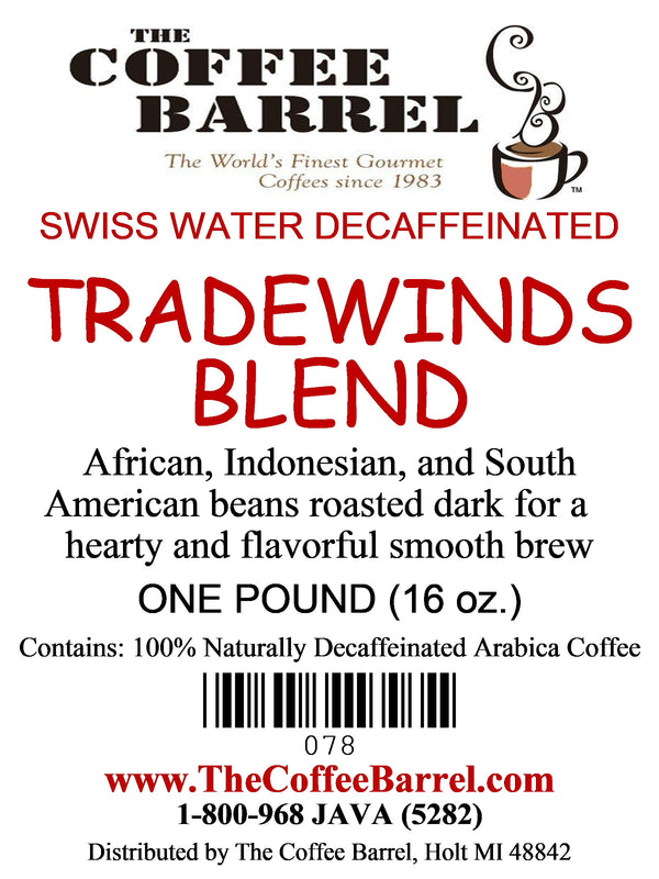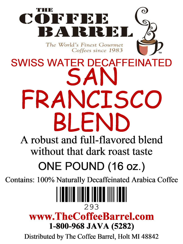 All Coffee Barrel decaffeinated options are Swiss Water processed.